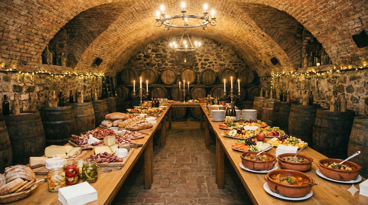Pro vinařské, degustační i společenské akce nabízíme pestrý výběr teplých a studených pokrmů připravovaných zkušenými hotelovými kuchaři. Spolupracujeme s vinaři z okolí a zajišťujeme kompletní pohoštění pro jejich hosty. Stačí nás kontaktovat s konkrétní představou nebo orientačním rozpočtem na osobu – rádi Vám připravíme nabídku na míru.